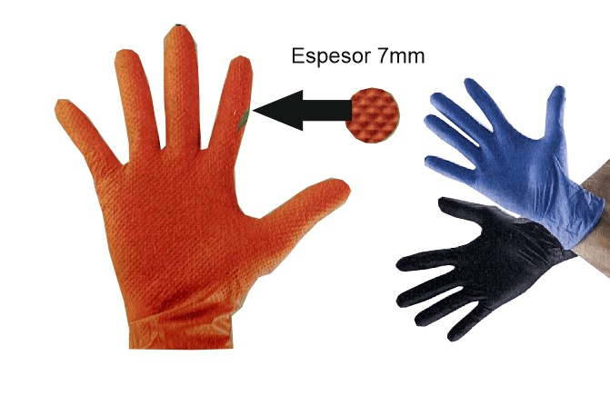 Luvas de nitrilo laranja com rugosidade antiderrapante de 7 mm.